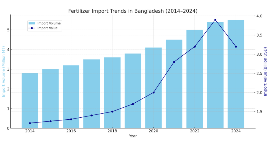 1. Import Volumes & Value 2022–23: ~5.41 million MT imported; cost ~US$3.89 billion in first 7 months 2023–24 (July–March): ~5.44 million MT, valued at Tk 275
